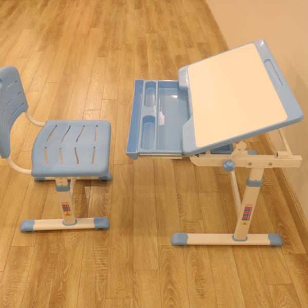 - Mặt bàn điều chỉnh được độ nghiêng dễ dàng giúp trẻ không bị mỏi cổ và mắt. Bên cạnh đó, mặt bàn được thiết kế mặt chống trượt để sách, các vật dụng không bị rơi khỏi mặt bàn