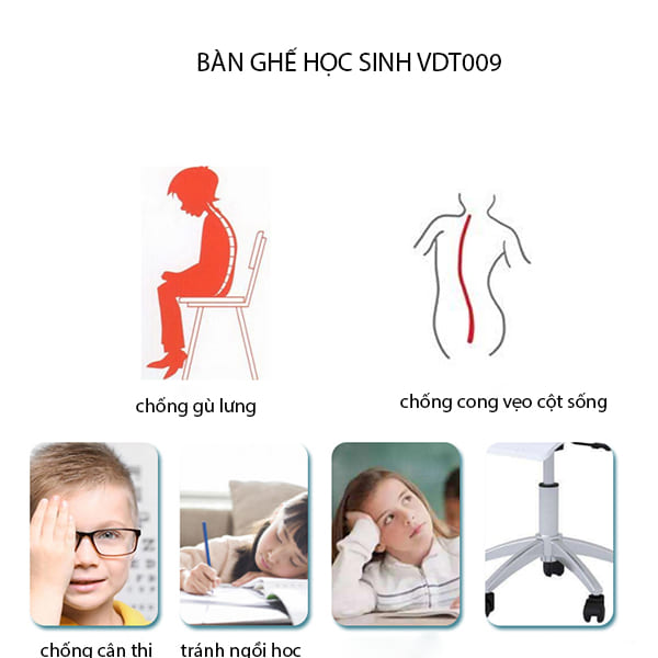 BÀN GHẾ HỌC SINH HIỆN ĐẠI VDT2020-009 ĐẠT TIÊU CHUẨN THẾ GIỚI