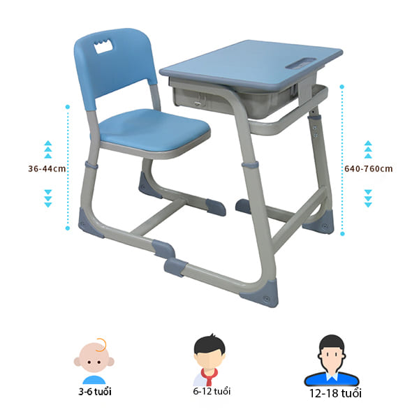 Bàn ghế học sinh hiện đại được sản xuất đều đảm bảo chỉ tiêu về chiều cao trung bình, phù hợp với từng độ tuổi của học sinh. Để khi đưa vào sử dụng thì học sinh sẽ được đảm bảo an toàn về sức khỏe và xương khớp.