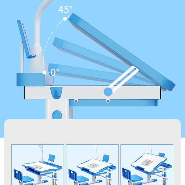 √ Mặt bàn chống gù có thể thay đổi độ nghiêng từ 0-45~50 độ, phù hợp với nhiều nhu cầu sử dụng: đọc sách, vẽ hoặc viết rất thuận tiện