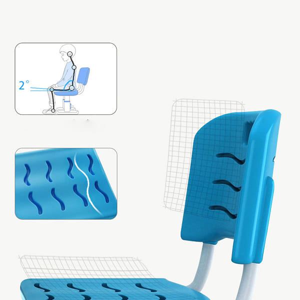 √ Ghế học chống gù có khung trụ ghế bằng kim loại chắc chắn, lưng ghế và chỗ ngồi làm bằng nhựa cao cấp.