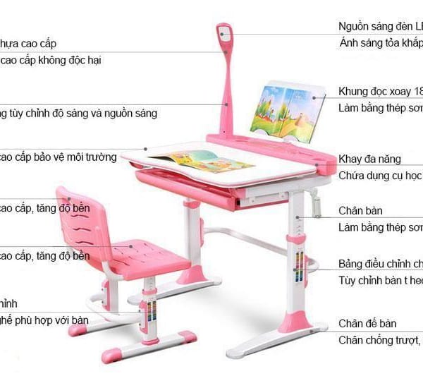 - Cả bàn và ghế đều nâng hạ được chiều cao để phù hợp nhất với chiều cao của các con. Dùng cho các con từ 4 tuổi cho đến khi cao 1.8m (kể cả người trưởng thành dùng cũng rất tốt cho sức khỏe).