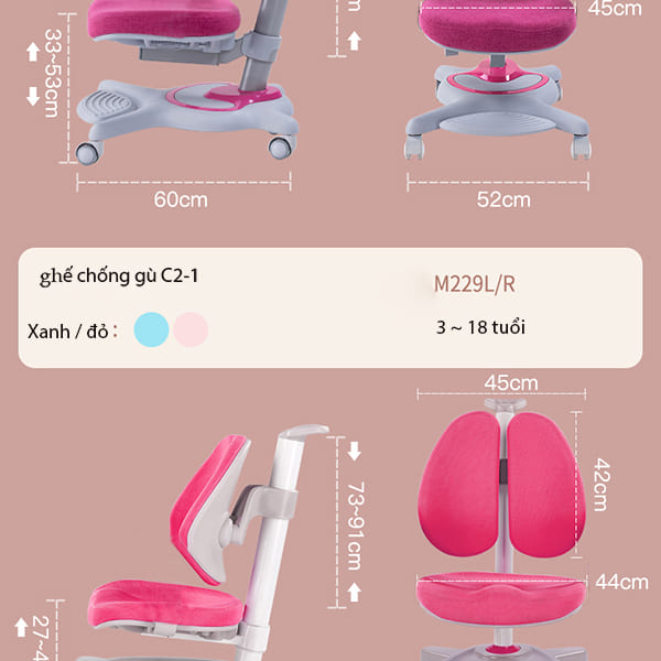 | Tặng kèm thêm 01 bọc đệm ghế (1 mặt ghế ngồi + 1 mặt lưng dựa) | Có thể tháo ra để giặt lúc bẩn, luôn luôn ngồi học với chiếc ghế sạch sẽ. |